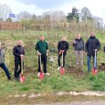 An diesem Tag fanden auch zwei Mitmachaktionen statt. Auf dem Grundstück von Christoph Schwarz wurden gemeinsam die vier ersten Weißdorn-Stöcke gepflanzt. Herzlichen Dank an Christoph, die Blühgärtner sowie an Janina und Christian Schnaithmann. J+C Schnaithmann gab professionelle Anleitung und hat die vier Pflanzen gesponsert.