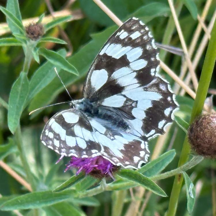 Es wurde gemäht - und zwar so, dass jeweils rechts und links der Baumreihen gemäht wurde (oder die Pflegemassnahme sogar mit der Sense erfolgte?). In den Baumreihen selbst wurde das Gras stehen gelassen, damit die Insekten und das Kleingetier (Spinnen, Eidechsen etc...) dorthin ausweichen können und noch einen Unterschlupf mit Deckung haben. Ein weiterer Grund ist, dass noch ein Teil ihrer Nahrungsquellen erhalten bleibt - und nicht alles auf einmal weg ist. Wenn die Pflegemassnahme "Mähen" ansteht, ist es immer gut, zuerst nur einen Teil zu mähen und erst einige Tage später dann den zweiten Teil. Das erhält optimal die Biodiversität! Das fördert den Erhalt der einzelnen Arten wie auch der Biomasse in Summe der einzelnen Individuen