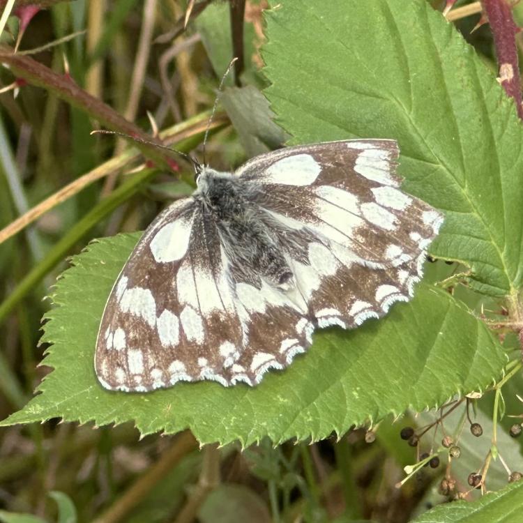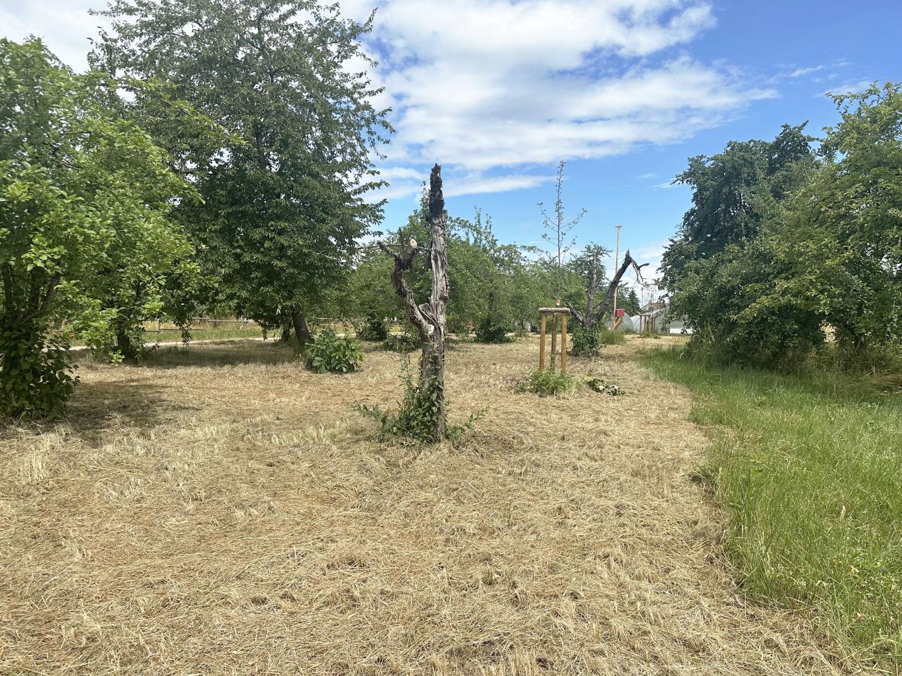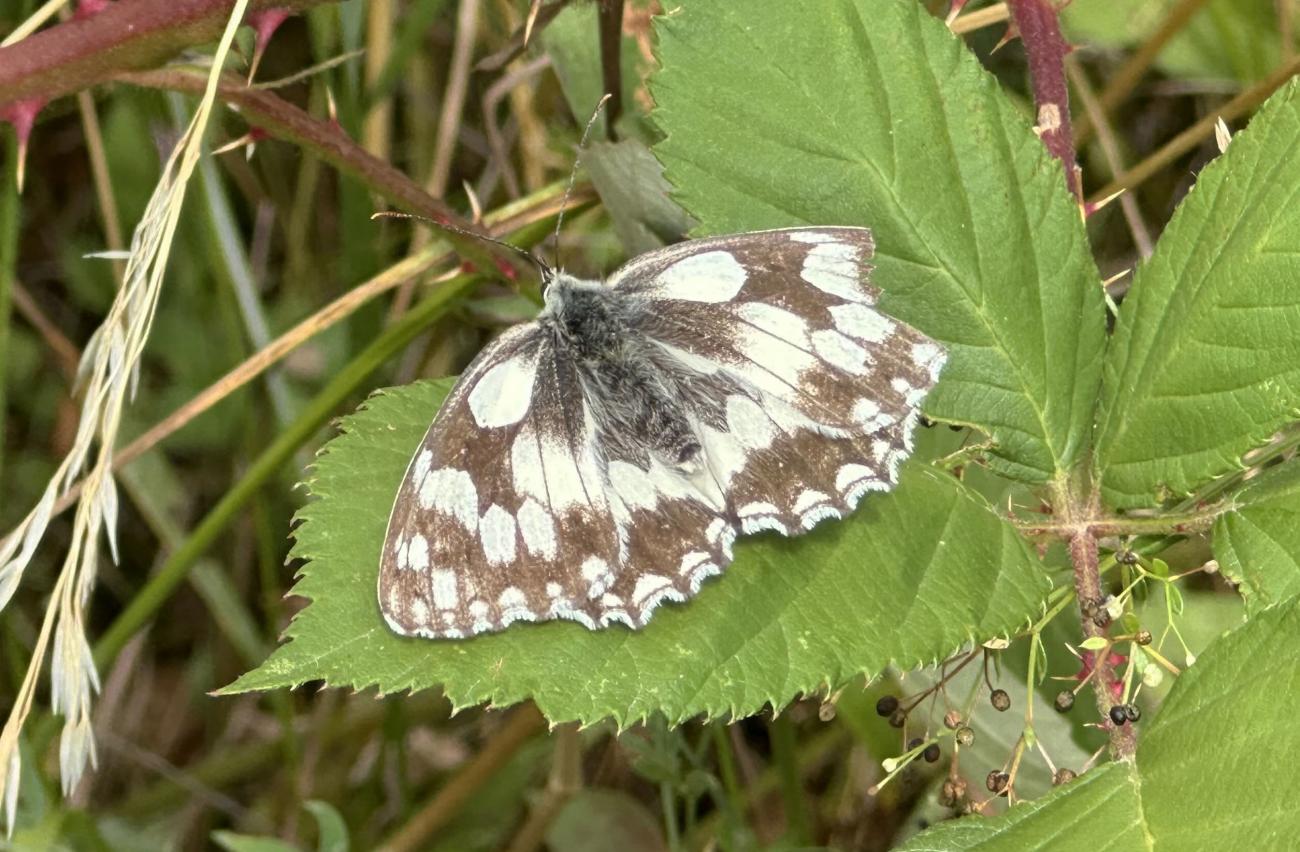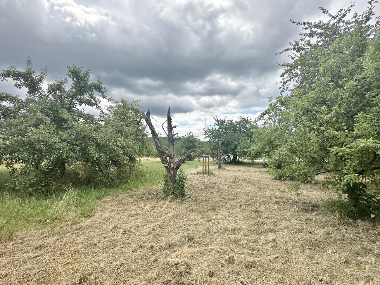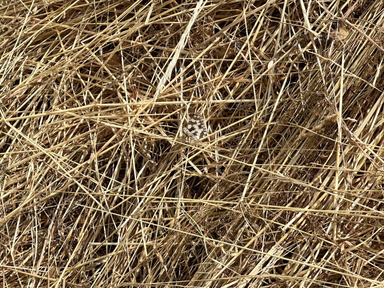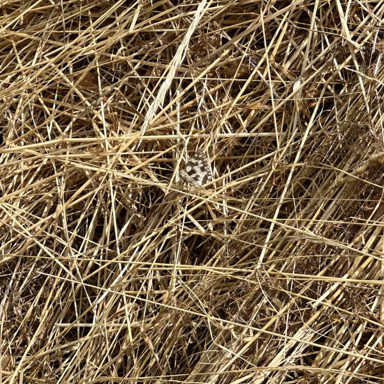 Seit Wochen regnet es nicht mehr. Ende Juni hatten wir eine 1.Hitzewelle des Sommers 2025 mit hohen Temperaturen um oder über 30 Grad. Die Pflanzen und die Erde lechtzen nach Regen, der aber nicht kommt. Das Gras ist gelb wie in einer Steppe und hochaufgeschossen, während die Blühpflanzen eher kümmerlich mitgewachsen sind. Hier wurde gemäht - partiell nur Teile der Fläche, um Rückzugsgebiete für die Insekten zu erhalten. Es gibt sehr viele Schmetterlinge - hier sehr vor allem Schachbrettfalter - Melanargia galathea. Sie fliegen oft lange suchend und kräftezehrend über die Flächen ohne Blüten. Hier aber wurden dicht mit Wiesen-Flockenblumen bewachsene etwa 8 Quadratmeter zur attraktiven Nahrungsquelle und zum Treffpunkt zahlreicher dieser wunderschönen Edelfalter. Ob die dunklen Wolken des letzten Fotos endlich den ersehnten Regen bringen?