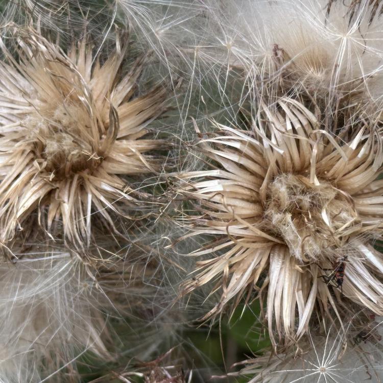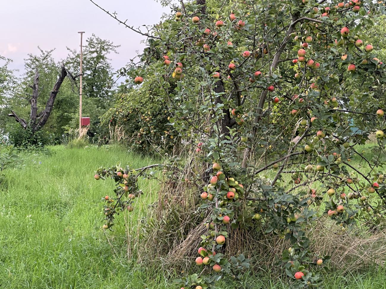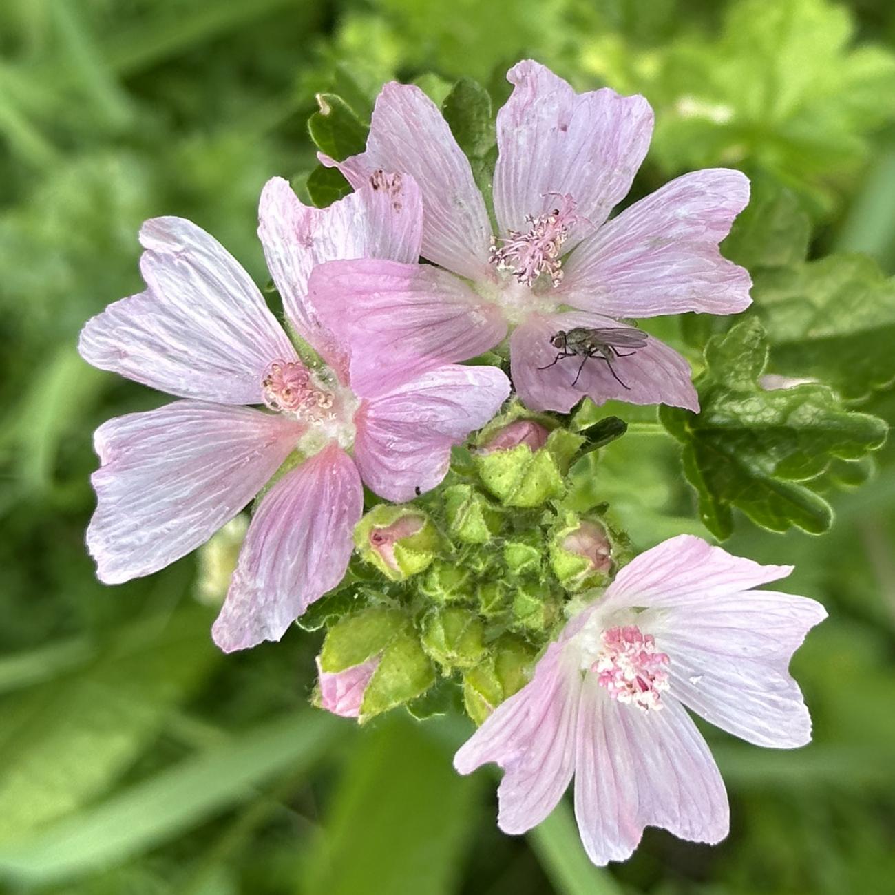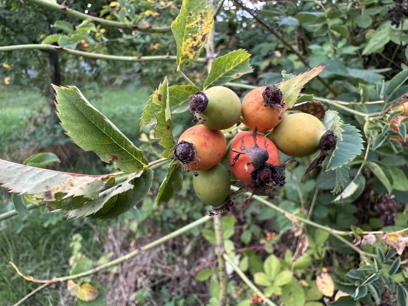 Es stehen noch einige Jakobs-Kreuzkräuter auf der Musterfläche. Wir lassen sie den Insekten, solange sie nicht beginnen sich zu versamen. Dann müssen sie weg. Das Highlight heute darauf war das scharz-weiße Ackerwinden-Bunteulchen (Acontia Trabealis). Vorher noch nie gesehen, sehr schön! Außerdem ist auf dem Jakobs-Kreuzkraut auch oft die Kinderstube der Knappen, auch Stein-Ritterwanze genannt zu sehen. Wie auch oft auf der Wilden Möhre. Auf einem Foto hier sind sowohl Knappen plus eine Streifenwanze zu sehen. Auf anderen Samenständen juvenile Feuerwanzen. bei schwindendem Licht noch einen Rotrandbär gesichtet (Foto unscharf). Ein Exemplar davon habe ich auch hier im letzten Jahr gesehen. Eine Kronwicke hat sich vom Nachbargrundstück (R7) jetzt hierher versamt.