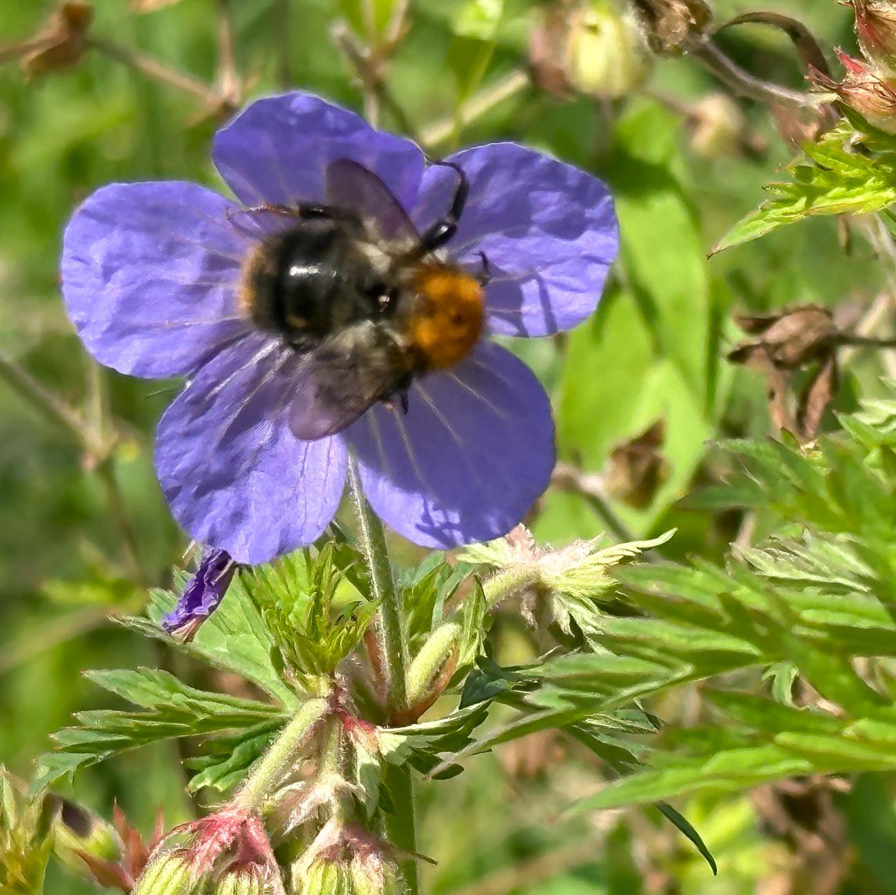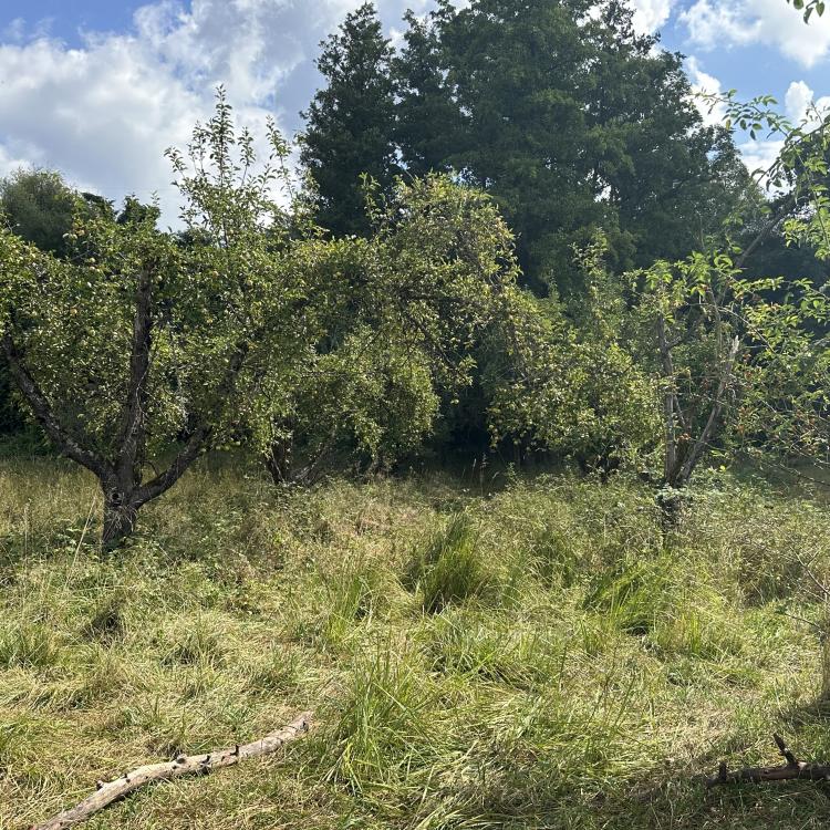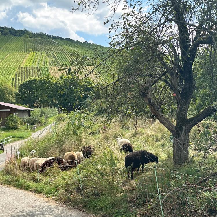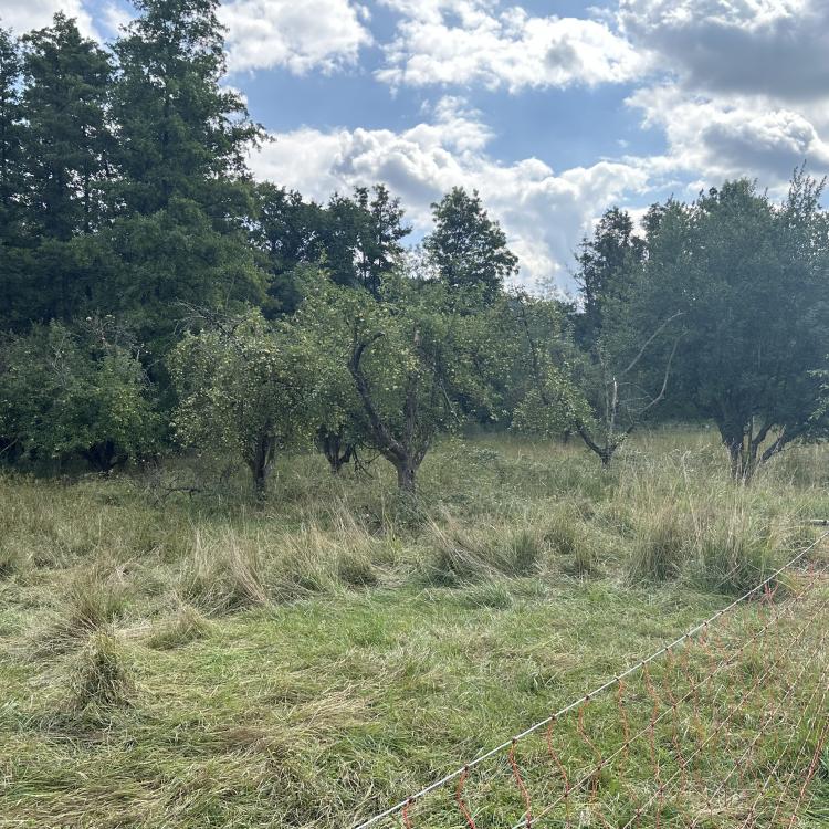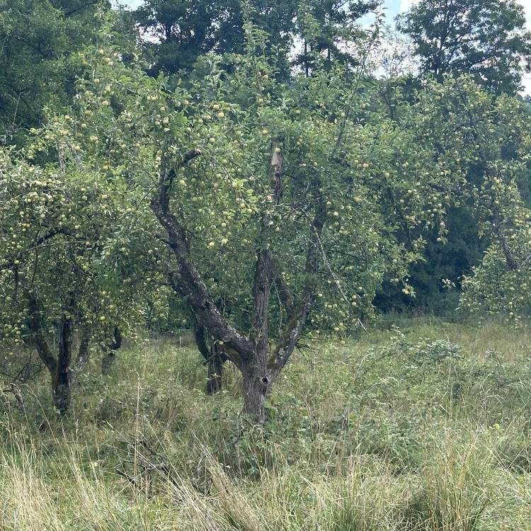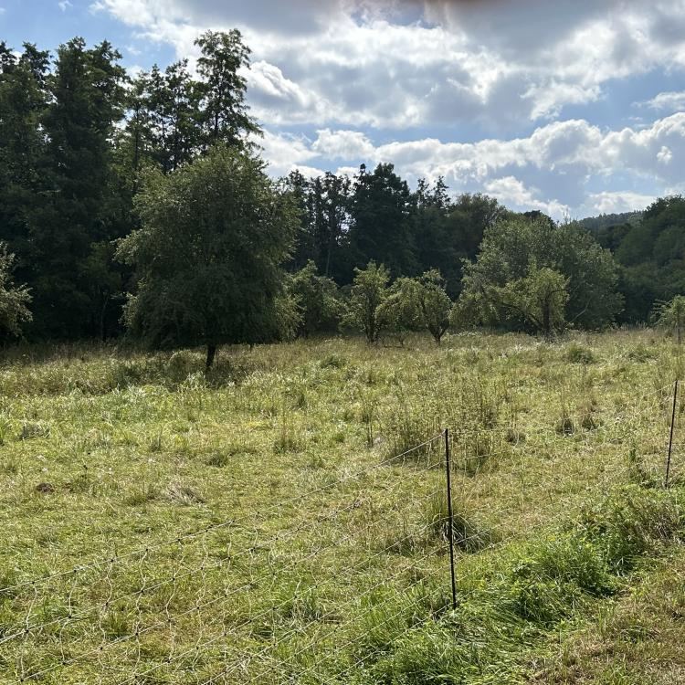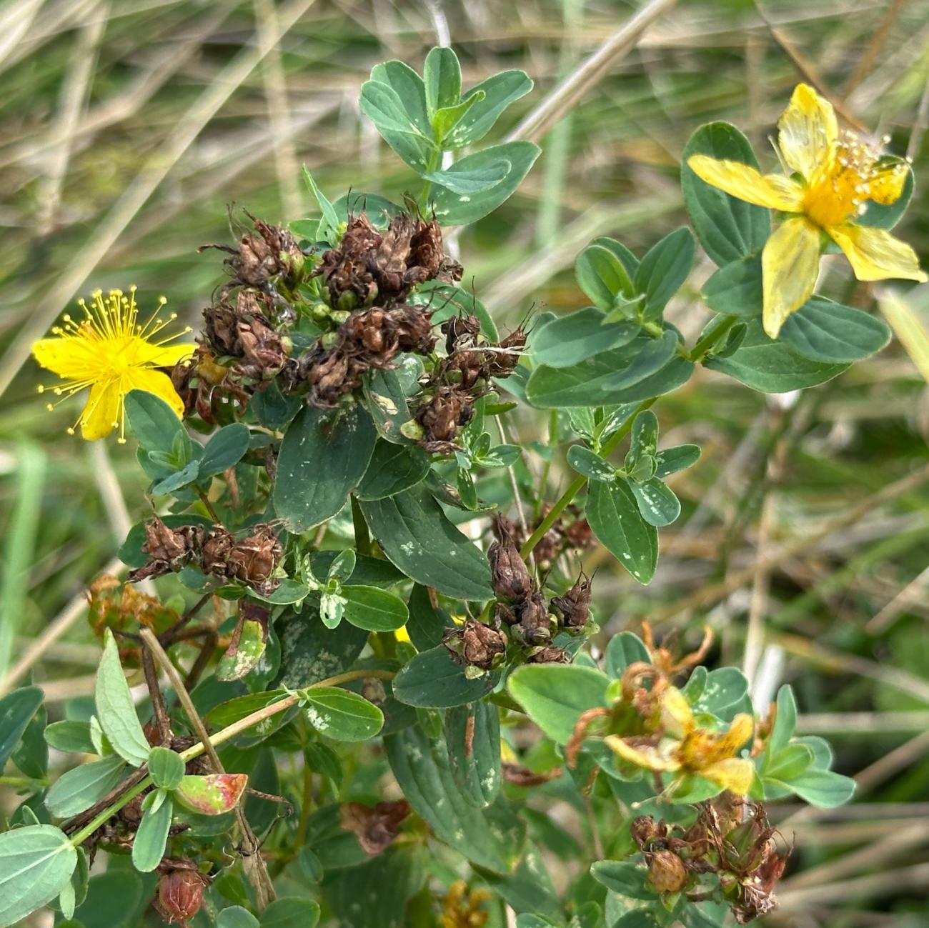 Da das Gebiet der S2 so sehr groß ist, habe ich die umfangreiche Sichtung heute am 24.08. gesplittet. Um 11 Uhr bin ich auf der östl. Seite entlang in Bachnähe gegangen. Später um 12.25 Uhr dann den westlichen Wiesenweg entlang der Einfriedung für die Schafbeweidung. Hier weiden alte seltene Rassen unserer Schäferin. Für mich neu und interessant zu sehen war, dass Schafe die reifen Hagebutten der Hunds-Rosenranken abfressen. Sie wissen wohl, da ist viel Vitamin C darin - und sie schmecken wohl gut. Entlang des Weges liegen auf dem Boden kleine gelbe reife Früchte und der ganze Baum hing voll davon - hier sagt die Erkennung "Haferpflaume" (Prunus insititia), eine andere sagt: Gelbe Kirschpflaume (Prunus cerasifera), die auch als "Wilde Mirabellen " bekannt seien. Es ist in jedem Fall eine gelbe Prunus-Art.