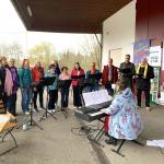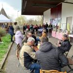 Nach dem ersten Act des Chores Vocal-X sowie weiterer Stärkung am Stand vom s’Wägele, am Türmle der WG Korb und im Café Fee gingen die Besucher zur zweiten Fläche. Die ca. 20 qm wurden professionell gefräst von den Gartenbauspezialisten Campinari und Grünheil und somit bestens vorbereitet, um mit der Burri-Methode für ein langfristiges und großes Blühergebnis zu sorgen. Auch Ihnen allen gilt unser herzliche Dank. An dieser Fläche sowie beim Weißdorn wurden Patenschildchen und Infotafeln eingesteckt, damit Ausflügler sehen, was dort alles noch so passieren soll.
