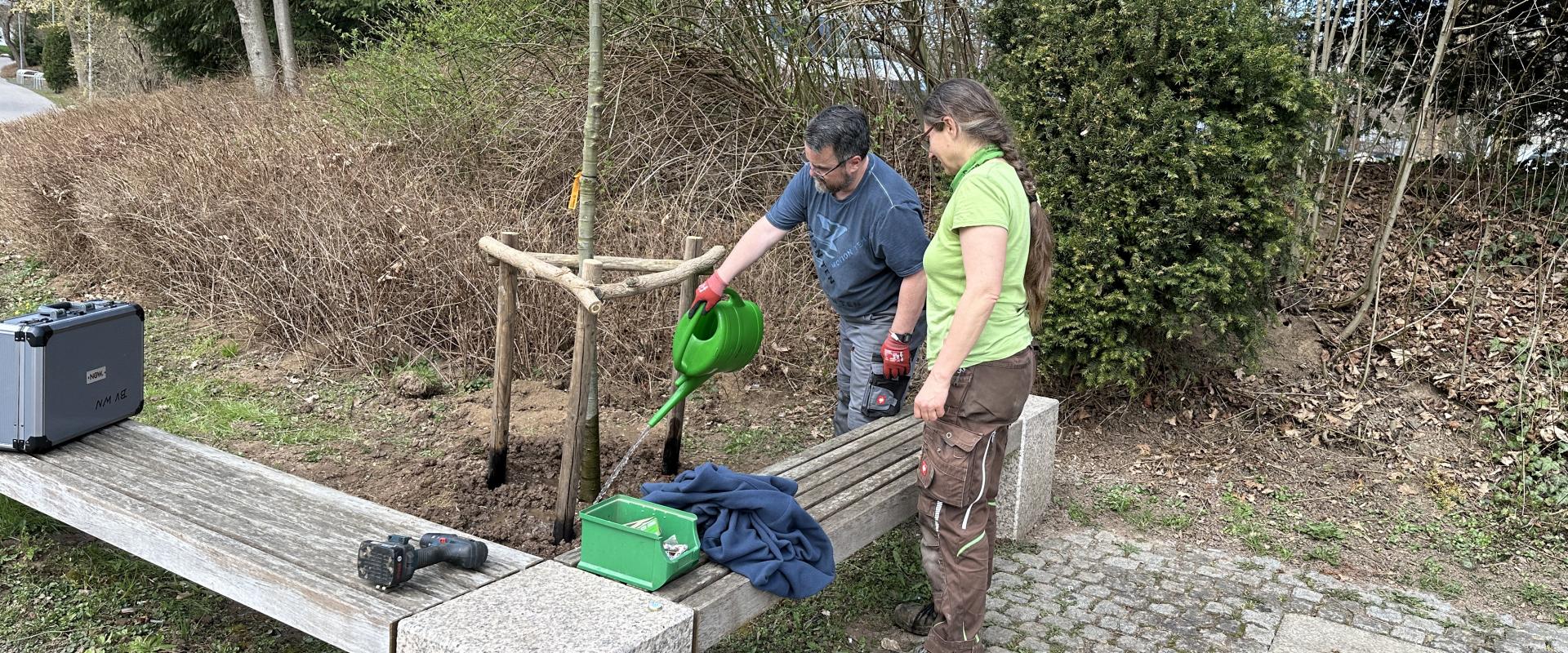 Ergänzung der Bienenweide rund um das Alvarium durch zwei Wilde Edelkastanien (castanea sativa) im März 2025. Die Bäume erhöhen die Strukturvielfalt ergänzend zu den bisherigen Blumen, Stauden und Sträuchern und bieten in ihrer Blühzeit reichlich Pollen und Nektar von Mai bis Juli.
