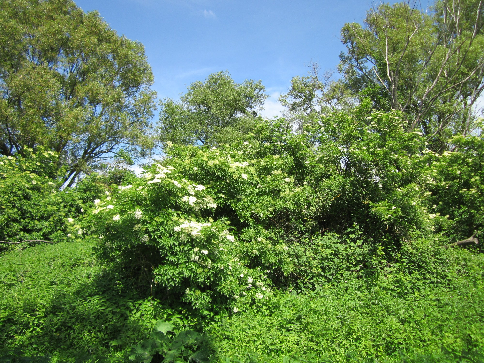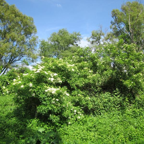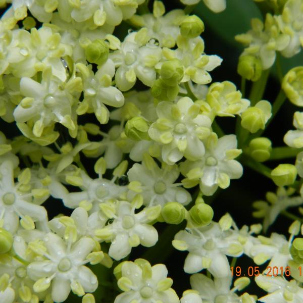 Schwarzer Holunder (sambucus nigra) hat den Nektarwert 0 und den Pollenwert 2. Es kann Honigtau geben. Die Blühmonate sind Mai und Juni. Schwarzer Holunder ist eine mehrjährige Pflanze und gehört zu den Sträuchern und Nutzpflanzen. Sie wird typischerweise 2 bis 7 m hoch und hat den floristischen Status einheimisch. Die Attraktivität für Wildbienen ist hoch. Die Attraktivität für Schmetterlinge ist sehr hoch.