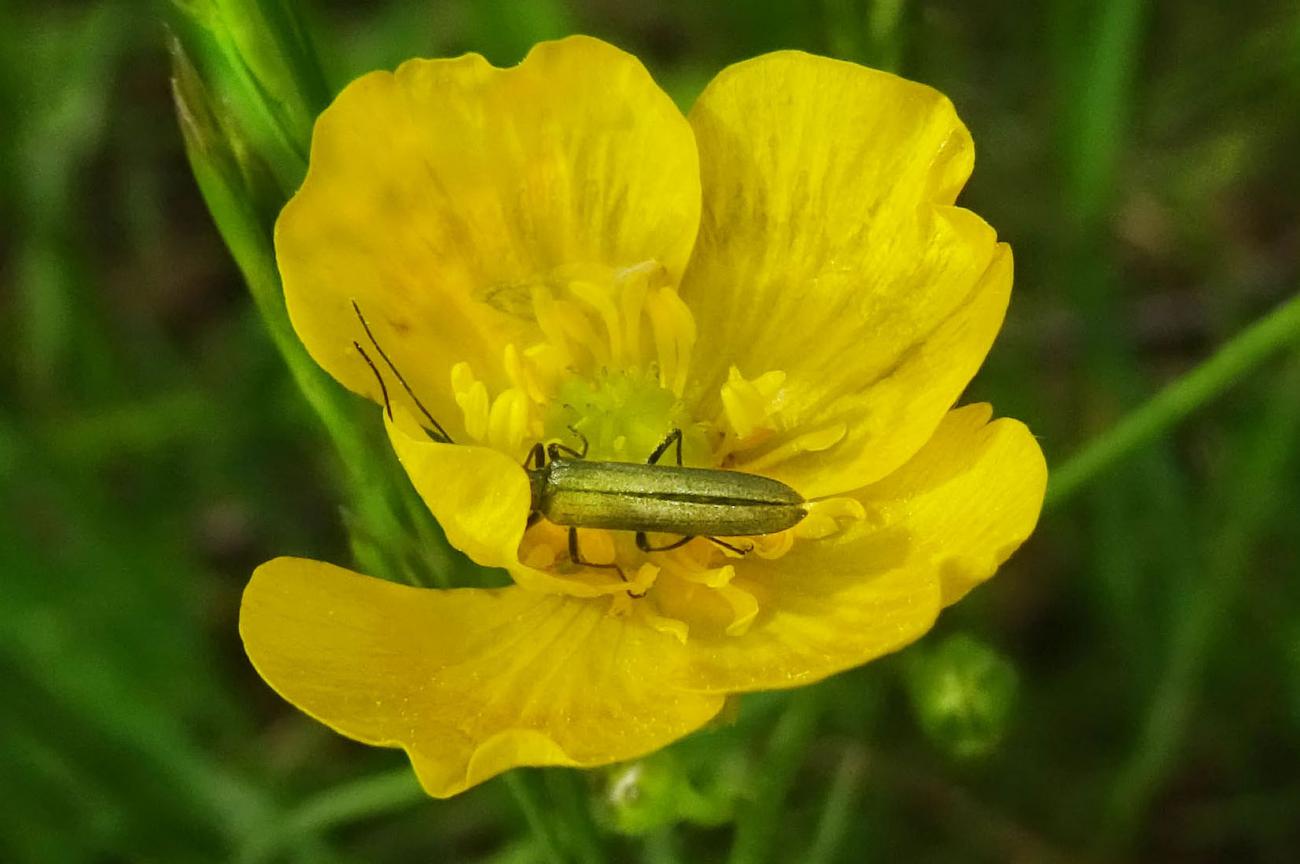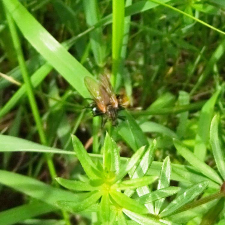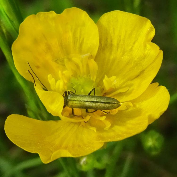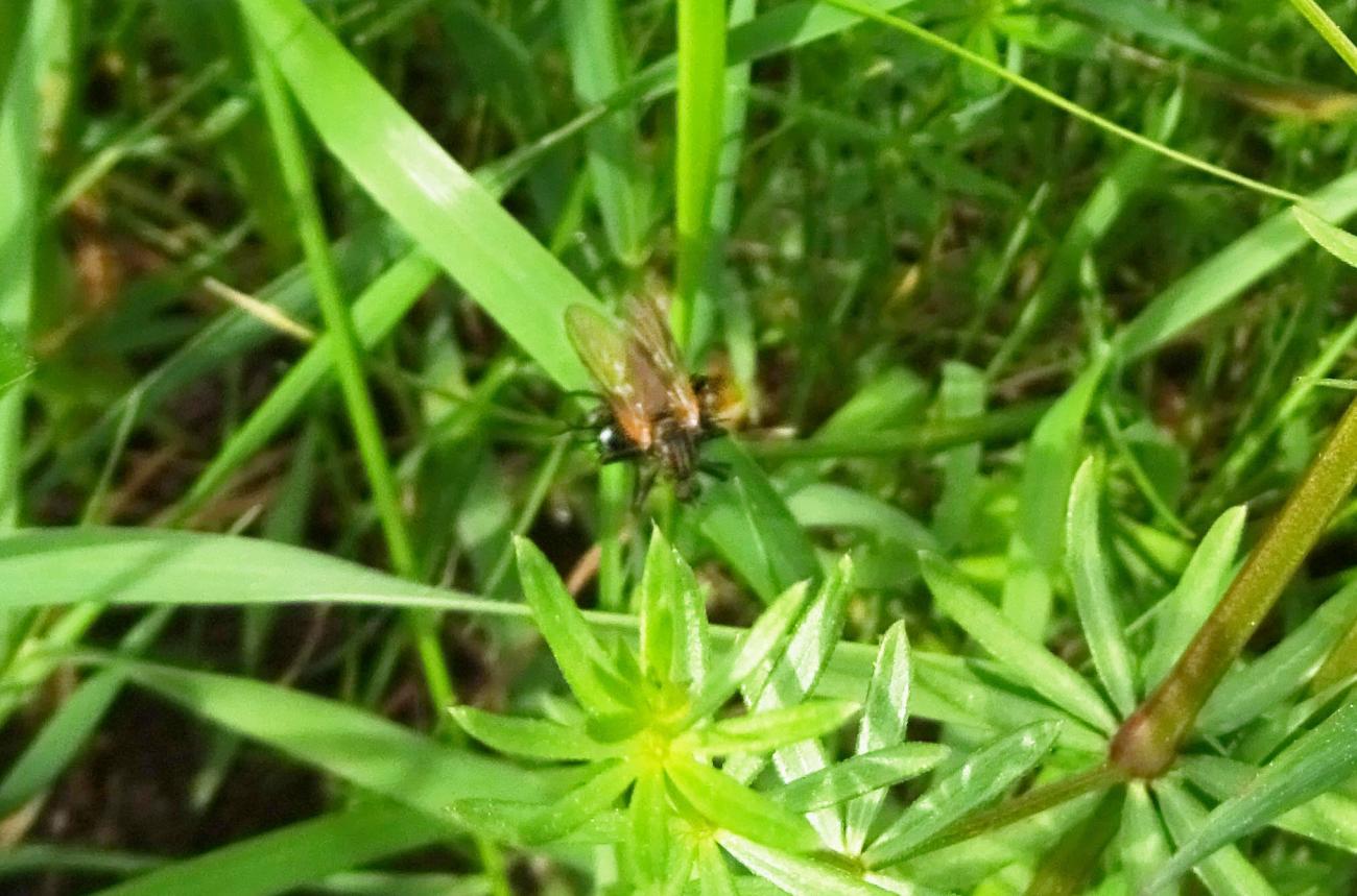 Heute eine Gemeine Feuerwanze gesehen mit ihrem schönen Panzer, aber das Highlight heute in der Sichtung war für mich meine erste Sichtung von Blutzykaden. Aber ebenso so interessant für mich war der Zweifleckige Zipfelkäfer auf der Scharfen Hahnenfußblüte, ganz grün und hinten diese rote Färbung. Heute war ein eher kühler Tag, deswegen waren ein Labkrautspanner und ein Heidespanner unterwegs, meist im Gras, aber auch auf dem Werbetransparent auf der Musterfläche R1. Und viele verschiedene Fligen, darunter auch eine gelb-schwarze Schwebfliege. Evtl. auch eine Raubfliege mit Beute, da ist das Foto aber etwas unklar.