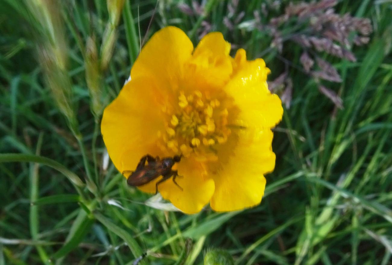 Habe hier zwei Sichtungen zusammengefasst: Eine am 15.05., 18.00 Uhr und eine gleich darauf am 18.05. um 14 Uhr. Das Gras auf den Wiesen steht schon sehr hoch Mitte Mai 2025. Schaumzikaden setzen ihren Schaum an Labkräutern ab. Zwei Trauer-Rosenkäfer auf Hartriegel, ein hübscher Hauhechel-Bläuling sitzt auf einem Gras. Dunkle Erdhummeln an Zaunwicken. Verschiedene Käfer auf Blüten. Auf den großen Ligustersträuchern haben sich Gespinstspinnen sehr viele Gespinstnetze aufgebaut und warten auf Beute.