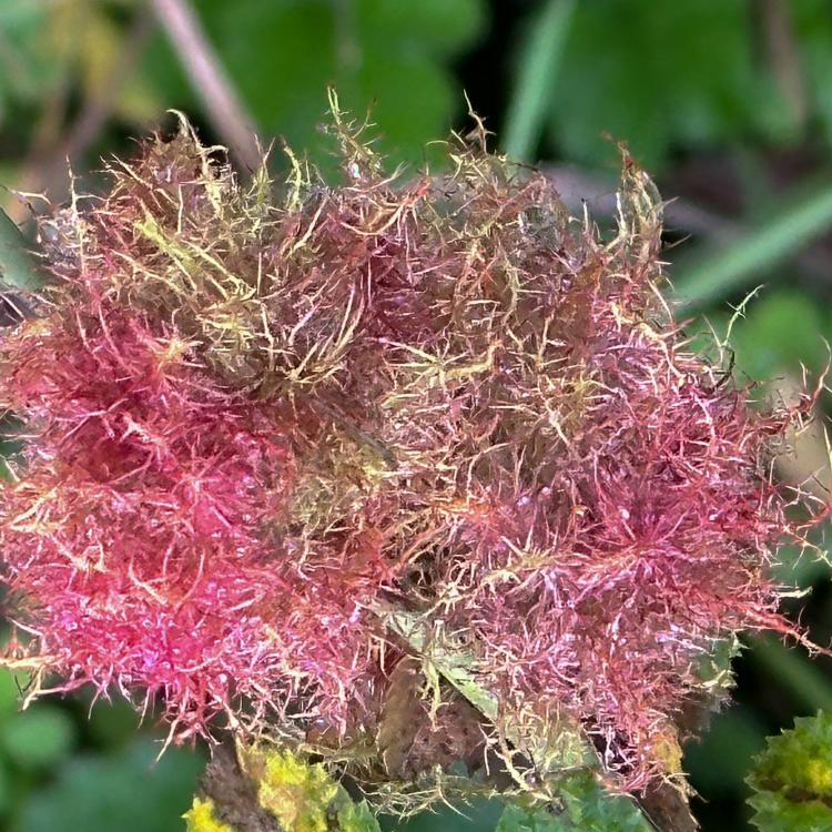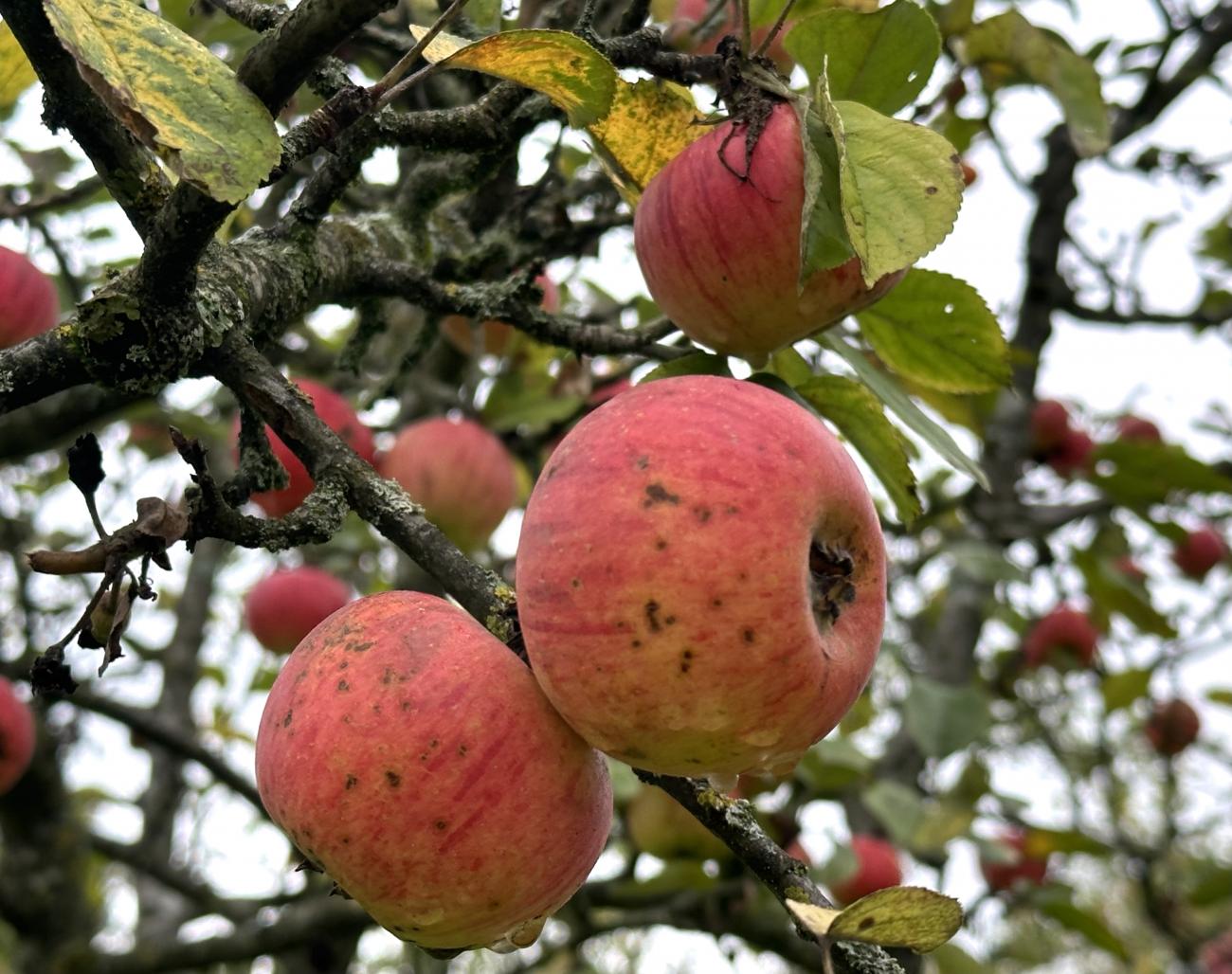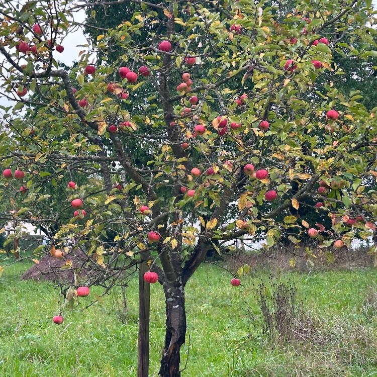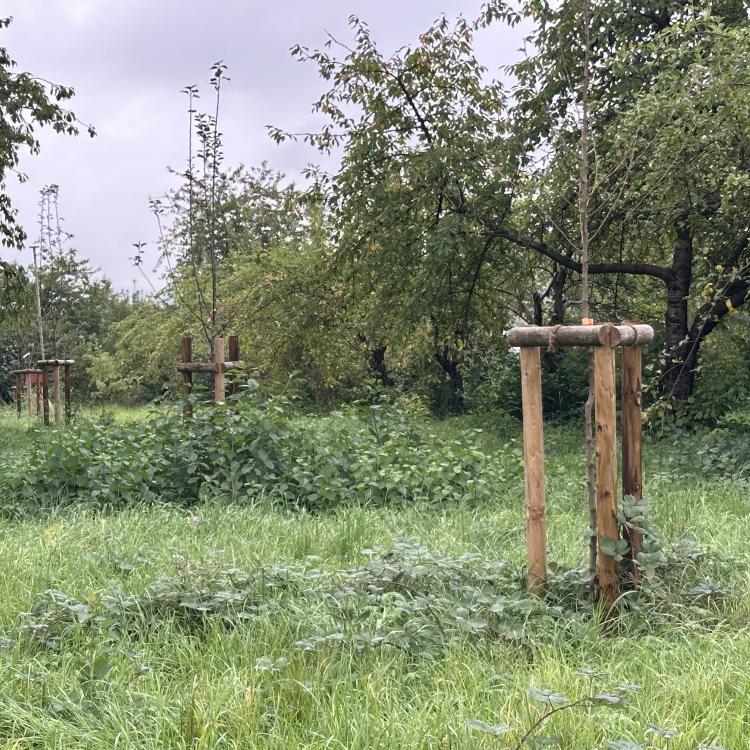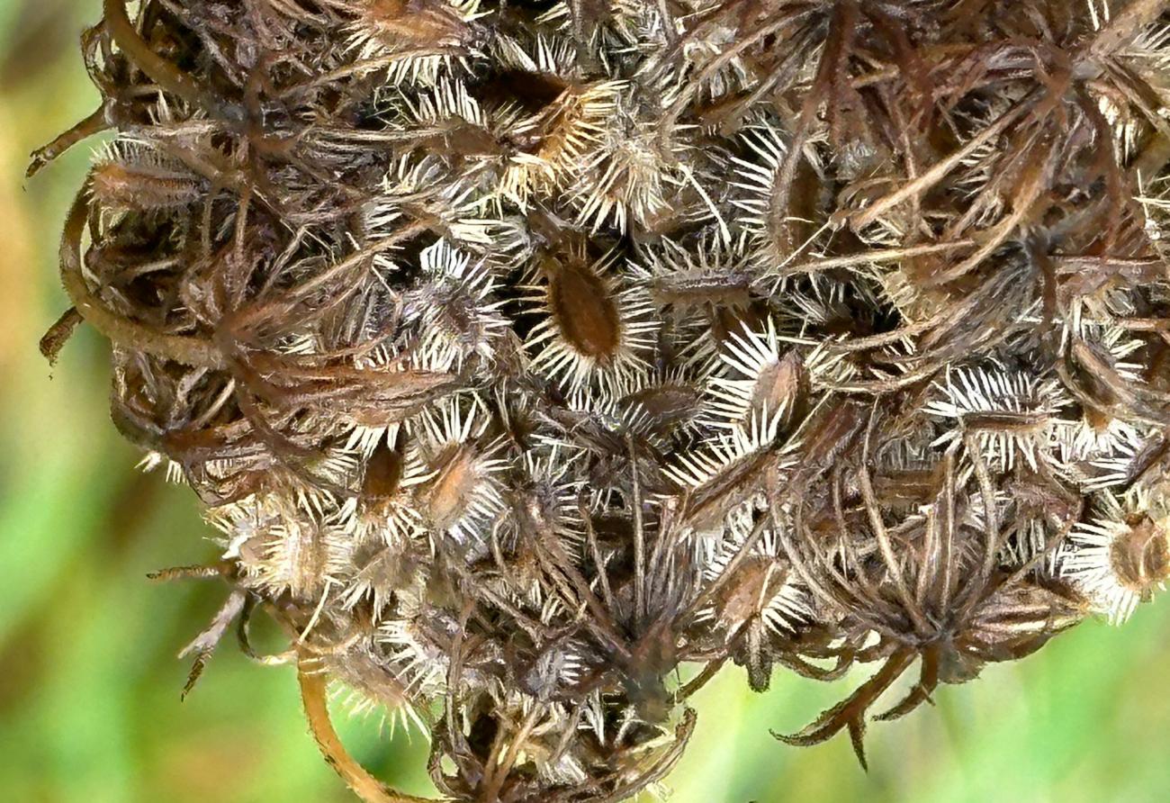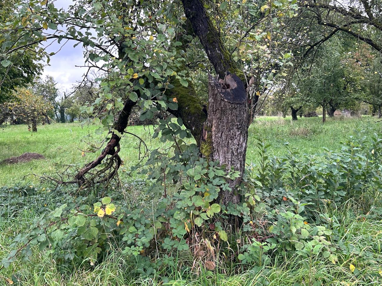 Es hat geregnet, alles ist noch nass. Beim Mähen wurden die 3-4 Quadratmeter abgeblühte Wiesen-Flockenblumen stehen gelassen, damit sich an den Stengeln die neue Generation Insekten, vor allem die Schmetterlinge entwickeln können. 3 Fliegen und eine rote Wanze gesichtet. Insgesamt ur noch wenige Insekten heute Ende September gesichtet.