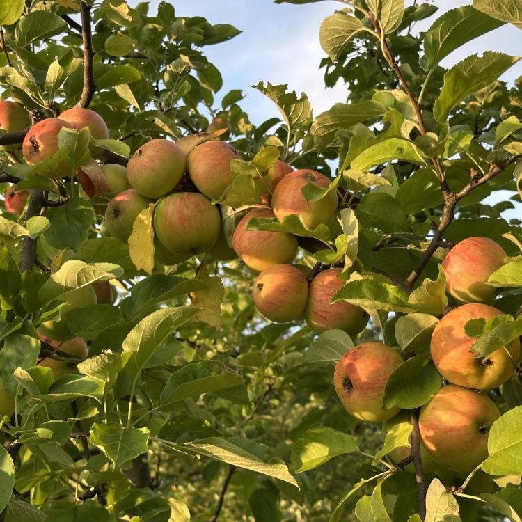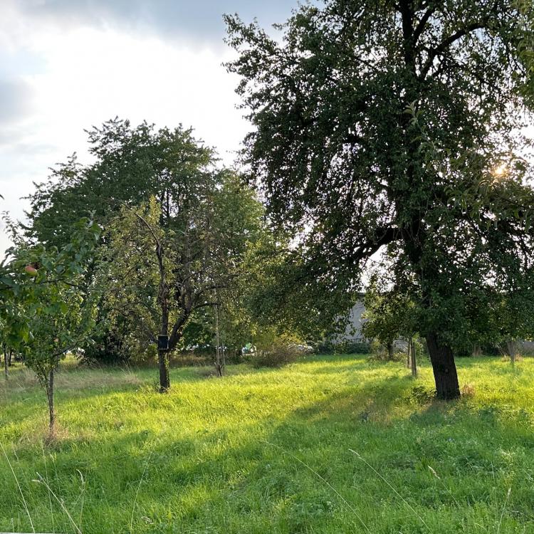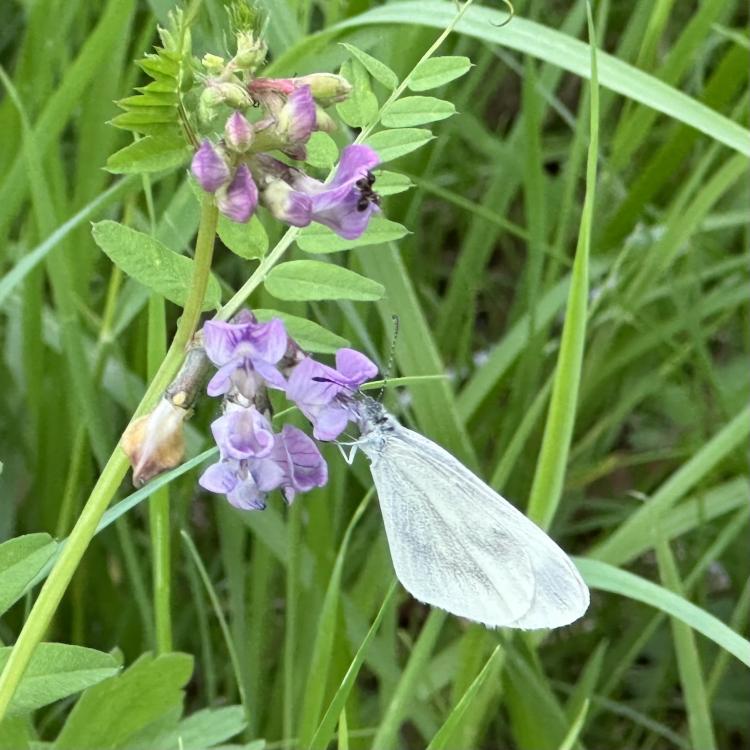 Mitte August eine abendliche Sichtung. Es sind ja zur Zeit nicht mehr viel an blühenden Pflanzen auf der Fläche. Ein weißer Schmetterling, der auf der Außenseite eine graue Zeichnung besitzt, ein Senfweißling (Leptidea sinapsis) scheint alle Blüten zu mögen und sitzt sowohl auf der Zaunwicke, wie auch auf dem Hornklee und sucht auch am Weißen Labkraut nach Nektar. Ein schwarzer kleiner Rüsselkäfer sitzt auf der Storchschnabel-Blüte. Schöne Äpfel überall an den Bäumen. Die Efeustränge am großen alten Kirschbaum haben mittlerweile Armstärke. Manchmal frage ich mich, ob so ein starker Efeu das Potential hat diesen mächtigen und äußerst vitalen Kirschbaum zu schwächen und gar zu zerstören?!