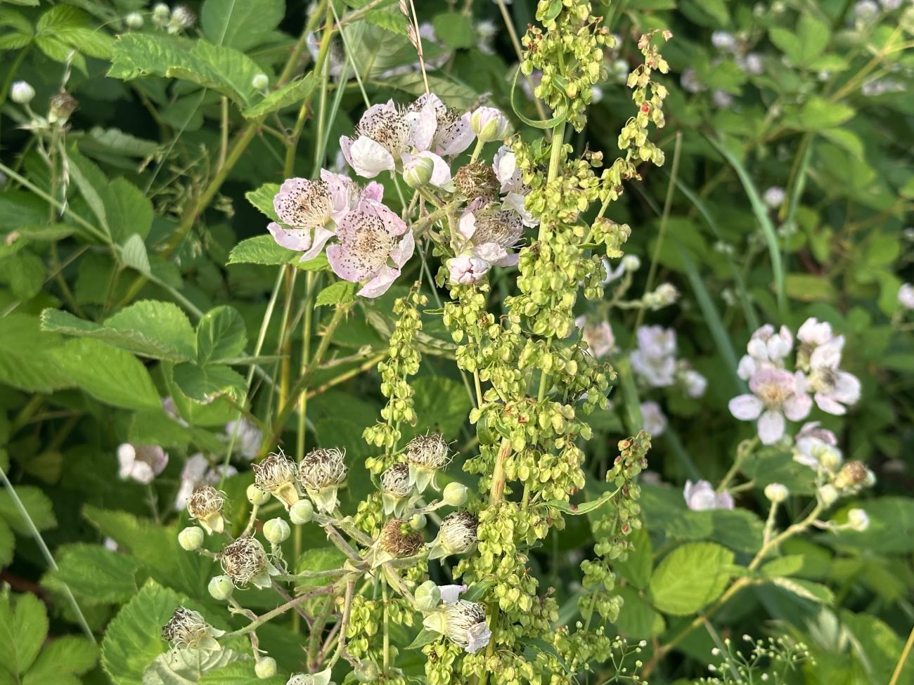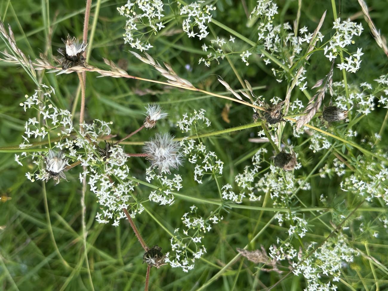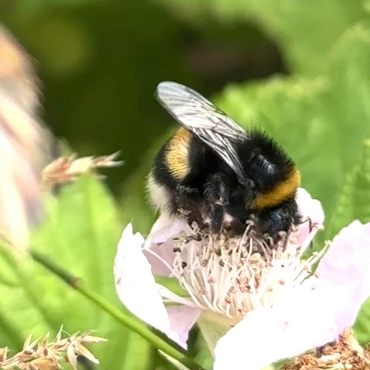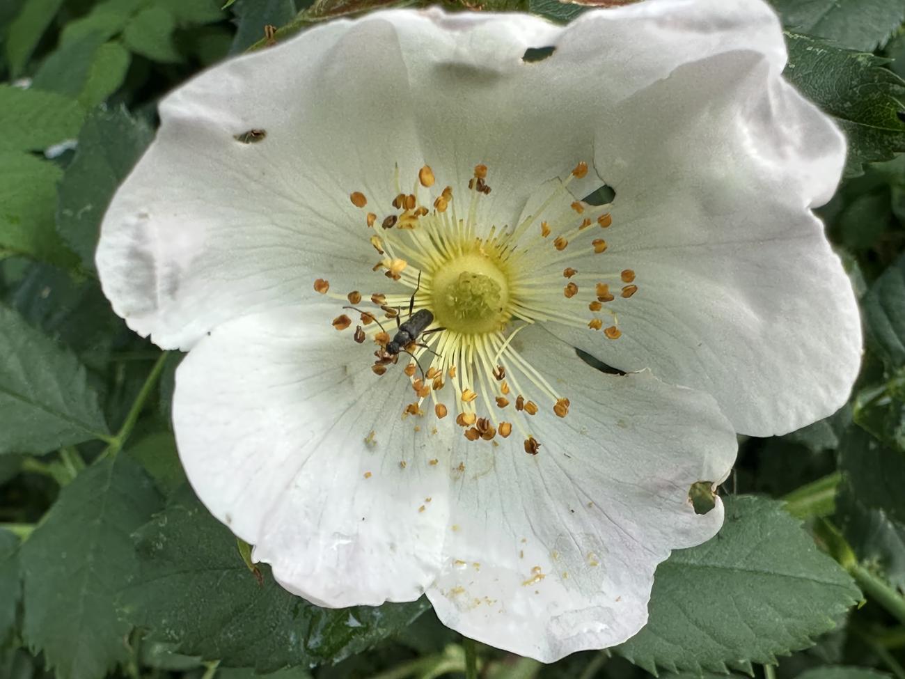 Heute war ein ganz besonderer Tag hier an der Fläche: An der großen Brombeerhecke habe ich sage und schreibe 3 Exemplare des Geschienten Pinselkäfers gesichtet (manchmal auch Gebänderter Pinselkäfer genannt). Diese Käferart ist wunderbar und nur selten zu sehen - und dann gleich 3 davon! Ich habe sie nur an diesem einen Tag gesehen, dann nicht mehr. Außerdem jede Menge Insekten an den Brombeerblüten: Hummeln, Käfer aller Art, eine schöne Schnake, wunderbar war auch die Tanzfliege, die ich zusammen mit einem Pinselkäfer fotografieren konnte. Ein Ameisensackkäfer, eine Schwebfliege der Art Eupeodes. Diese Brombeerblüten sind heute ein Fest für die Insekten, die sich hier heute wohl alle treffen. Ein Falke flog über die R7-Spitzäcker.